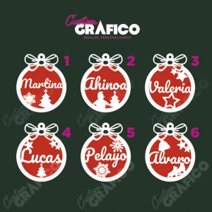 Adornos para árbol de Navidad cortados con láser en acrílico rojo + blanco de 9cm de diámetro apróx. y 3mm de grosor.